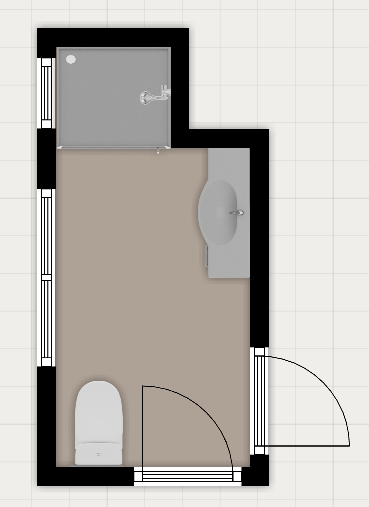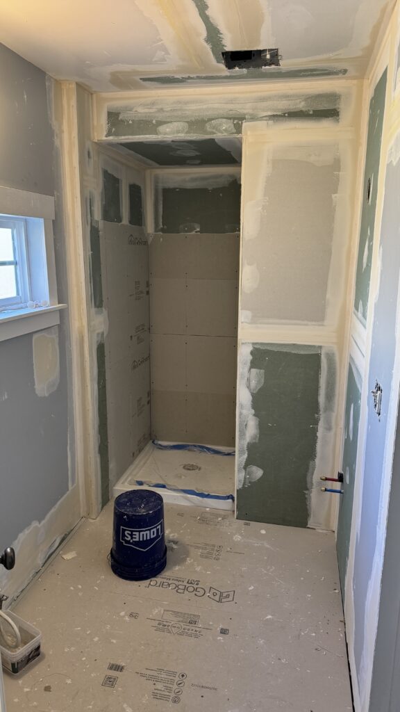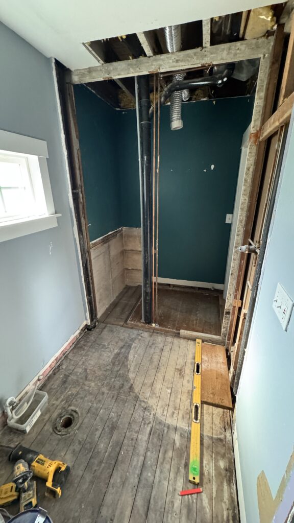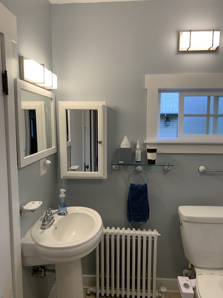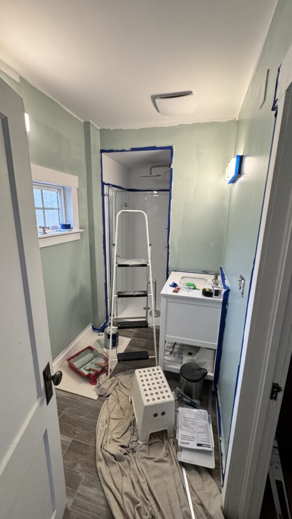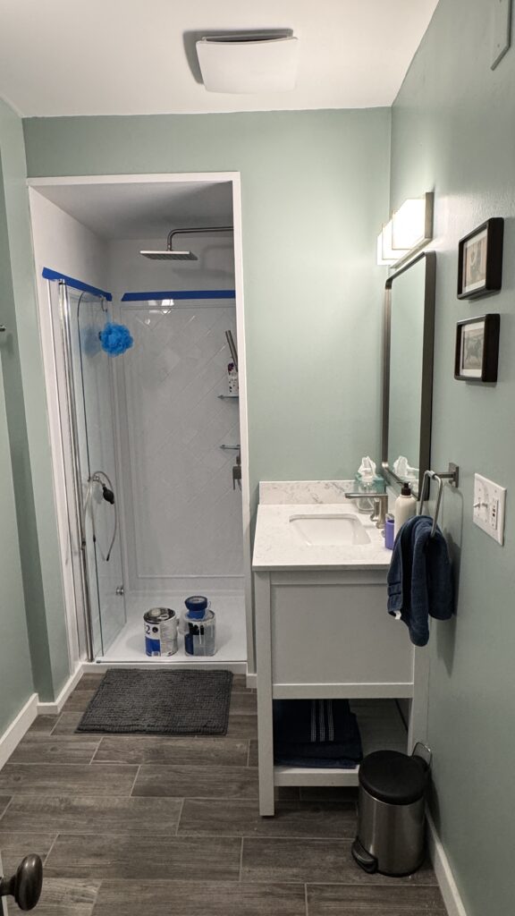 After remodeling the upstairs bathroom I was beginning to feel badly for visitors who had to use the small downstairs bathroom. The sink had no room for the various products that folks use when getting ready for the day/night/whatever. The shower was small, and the toilet was in a location that consumed way more space than it should have.